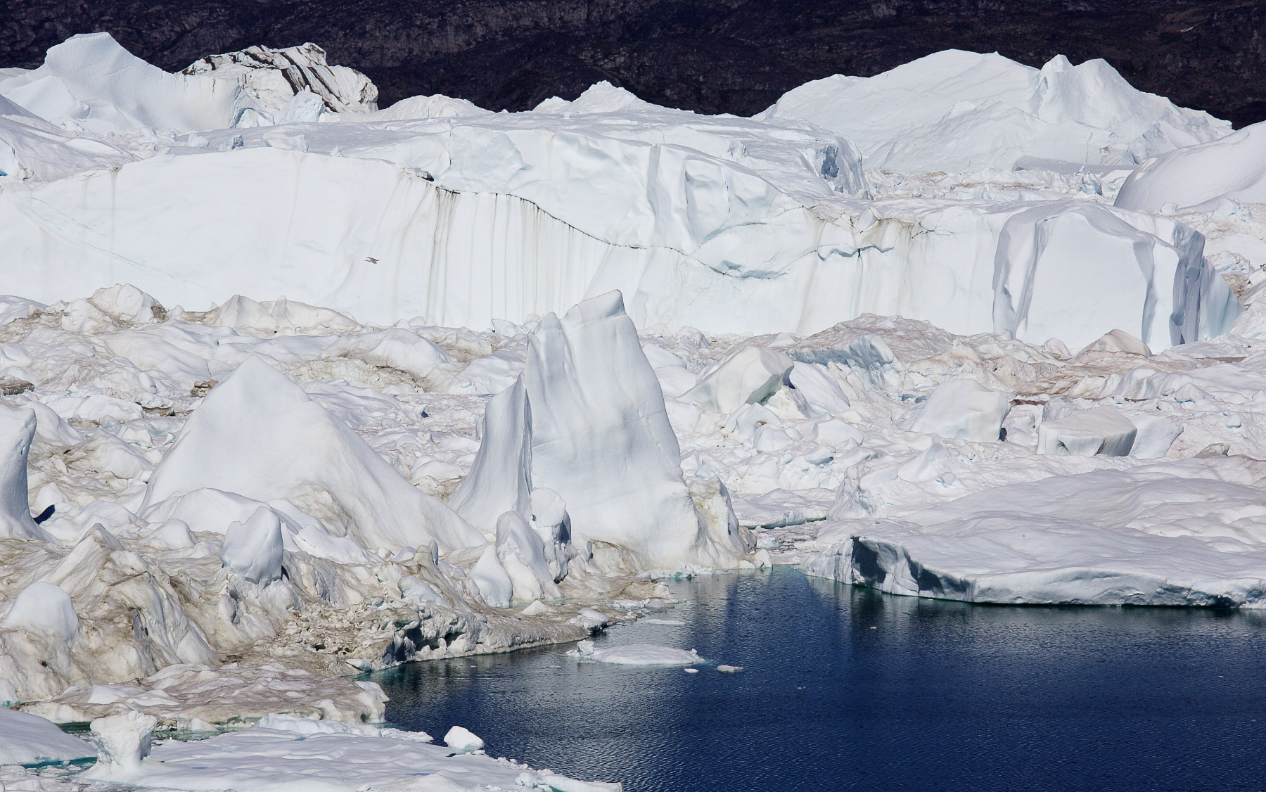 Für die lokale Bevölkerung, die mit dem Boot zwischen den Orten nördlich und südlich des Eisfeldes unterwegs ist, muss das ganz interessante Wegbeschreibungen mit sich bringen: „Dritter Eisberg links, zweiter Eisberg rechts, dann 500 m geradeaus am Trümmerfeld entlang“. Fünf Tage später ist das nur wohl schon nicht mehr richtig.