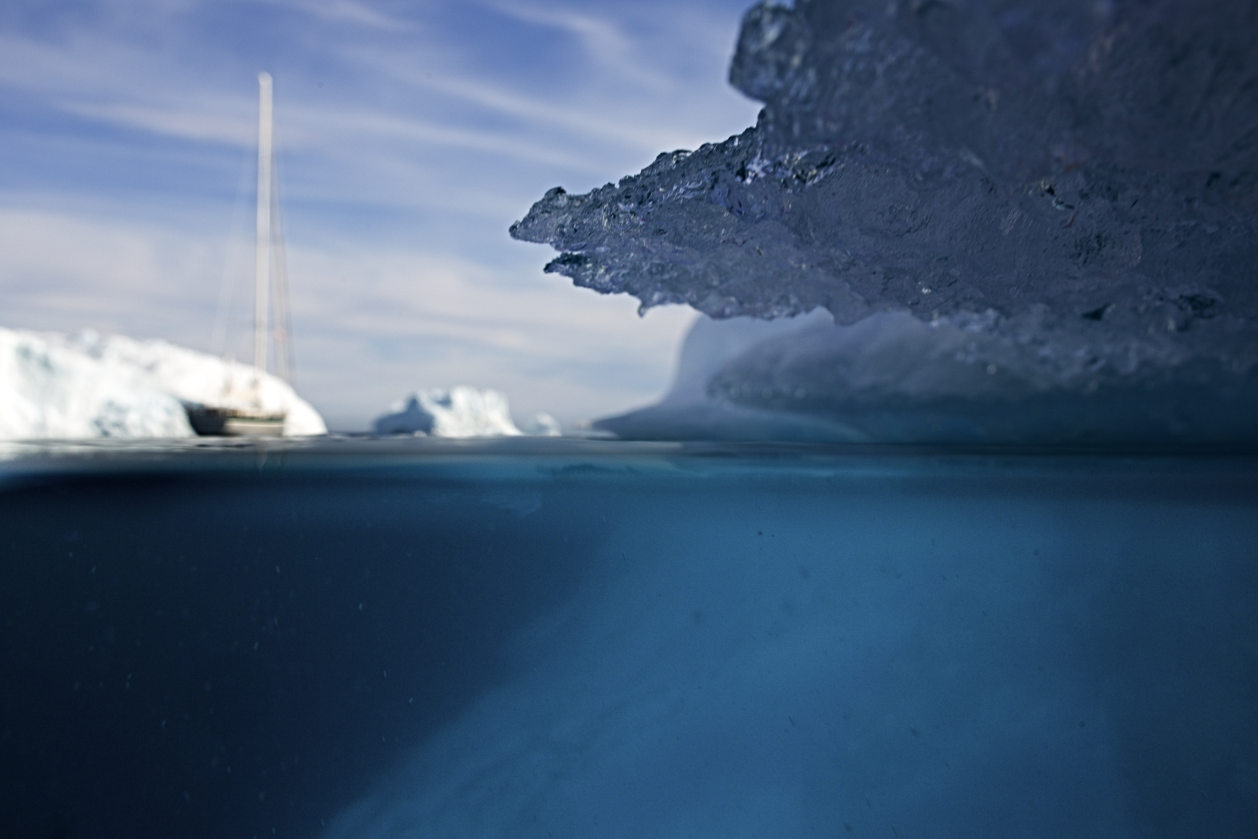 Dieses Festsitzen machen wir uns zunutze und kreuzen mit Vorsicht und Respekt ein wenig auf den kleinen Wasserflächen zwischen den Eisbergen herum. Es ist schon komisch, der Tiefenmesser zeigt knapp 200 m und die Eisberge können sich nicht bewegen, zuwenig Wasser.